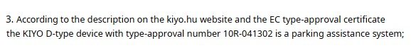 Although the Porsche owner insisted that he was mistaken and that the device was simply a parking aid, the officer in charge did not accept this explanation. Of course, the Porsche owner insisted throughout that no device designed to interfere with police speed measurements had been installed in his car; only a parking assistant designed to aid in parallel parking had been built into the vehicle. The vehicle owner contested the charge, and proceedings were initiated against him. The police also involved a forensic expert in the evidentiary proceedings, who confirmed the statements of both the distributor of Kiyo products (Laser Technologies Kft.) and the driver of the vehicle, namely the fact that the Kiyo product line includes both laser jammers and parking aids: