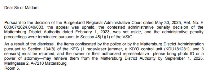 The court decision has become final; the Porsche owner has won a final judgment against the Austrian police. The current proceedings are now continuing on the grounds of compensation, with the Porsche owner suing the Austrian police for several thousand euros for the damages and injuries he suffered.