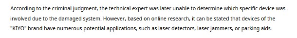 Although the Porsche owner insisted that he was mistaken and that the device was simply a parking aid, the officer in charge did not accept this explanation. Of course, the Porsche owner insisted throughout that no device designed to interfere with police speed measurements had been installed in his car; only a parking assistant designed to aid in parallel parking had been built into the vehicle. The vehicle owner contested the charge, and proceedings were initiated against him. The police also involved a forensic expert in the evidentiary proceedings, who confirmed the statements of both the distributor of Kiyo products (Laser Technologies Kft.) and the driver of the vehicle, namely the fact that the Kiyo product line includes both laser jammers and parking aids: